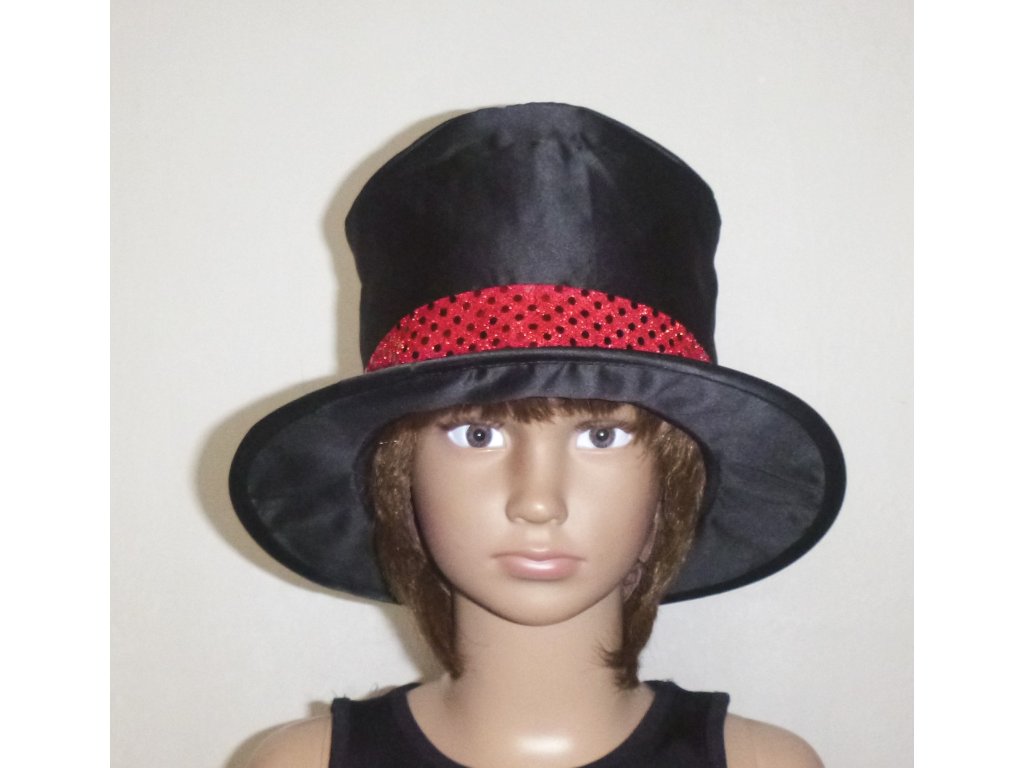 černý cylindr, klobouk na karneval, kouzelník, iluzionista, principál, steampunk klobouk, klobouk na maškarní ples, burlesque klobouk, elegantní klobouk, cylindr s červenou stuhou, retro klobouk, klobouk na party, doplněk ke kostýmu