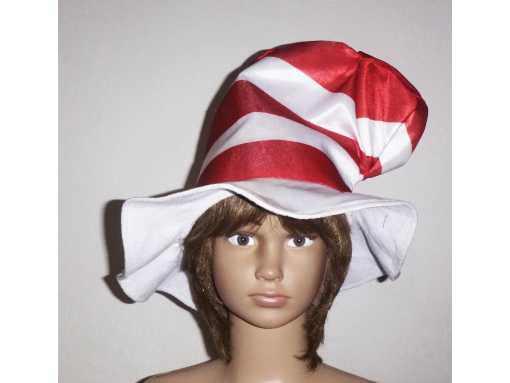 pruhovaný červeno-bílý klobouk, Dr. Seuss, Kocour v botách, loupežník, loupežnický klobouk, klaun, šašek, kašpárek, cirkusák, cirkusačka, trpaslík, skřítek