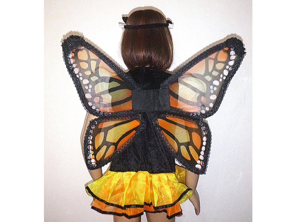 Velkolepá křídla: Na zádech jsou připevněna velká křídla s ikonickým oranžovo-černo-bílým vzorem motýla monarcha, která dodají kostýmu autentičnost a majestátnost. Křídla jsou samostatná a drží na gumách pro snadné nasazení a sundání.