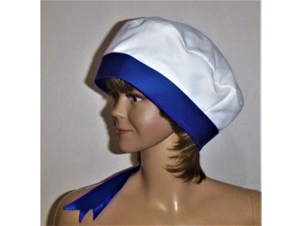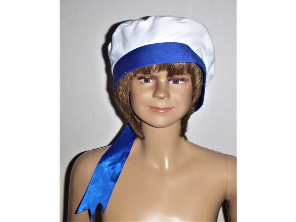 modro-bílá námořnická čepice, námořník, kapitán, kapitánka, námořnice, plavčík, plavčice