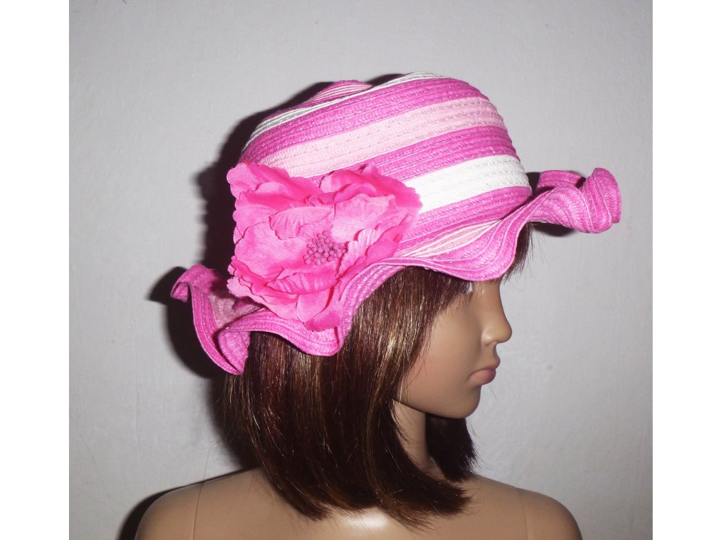 růžový klobouk, hipísačka, hippies, hippie, plážová kráska, zahradní víla, letní princezna, květinová dívka, retro styl, Havaj, tropická dovolená, diva, elegantní dáma, maškarní bál, vintage, 50. léta, promenádní klobouk, festivalová móda
