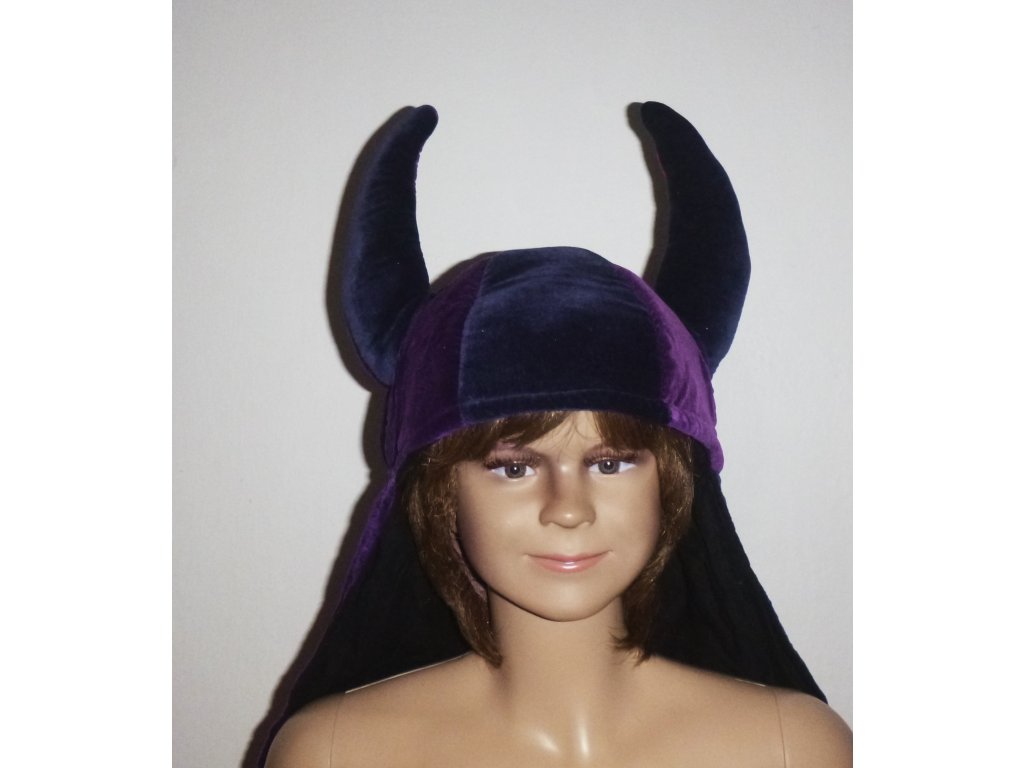 vikingská čepice, fantasy čepice, čepice s rohy, středověká čepice, pohádková čepice, kejklíř, šašek, viking, čarodějnice, čaroděj, černokněžník, temná postava, pohádková postava, fantasy postava